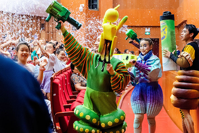 7:30分,在剧院内的钟声敲响之时,沉浸式儿童话剧《酷暑学校2》映入观众眼帘,一个个生动活泼的“小蜜蜂”“小蝴蝶”将每一位观众拉入到他们的世界,沉浸式,近距离感受到了昆虫的世界。现场充斥着此起彼伏的欢笑与掌声,手中拿着宝马手举牌的孩子们,也与舞台当中的“小昆虫们”做着互动与交流。至此,这场活动的宝马文化与沉浸式体验完美融合,为每一组到来的家庭带来了这场焕然一新的沉浸式体验。